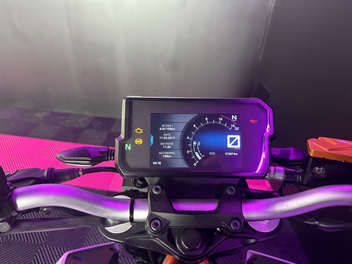 Cette très belle KTM d'occasion avec un kilométrage affiché au compteur de 21 500 km et en finition 390 DUKE, vous séduira par le BLANC de sa carrosserie qui a été contrôlé avant la mise en vente et que l'agence se fera un plaisir de vous en fournir les détails