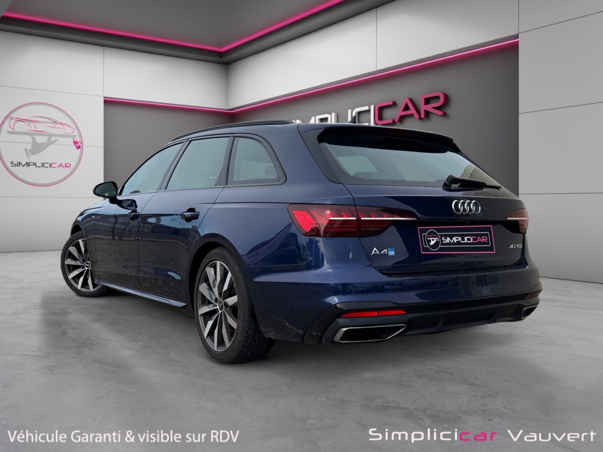 Pour l'achat de cette belle occasion AUDI A4 de 2022, contactez sans plus attendre notre agence automobile Simplicicar Vauvert, nos conseillers commerciaux se feront un plaisir de vous renseigner précisement et pourront même, à votre demande, organiser une visio afin d'éviter de vous déplacer si vous habitez loin.